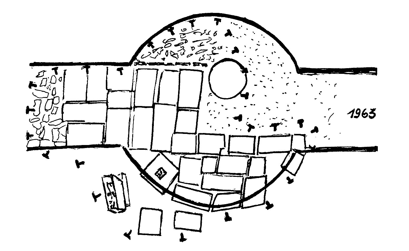 Drawing of the 1979-1980 excavations showing the various blocks discovered (© L. Lefèbvre, 1983).